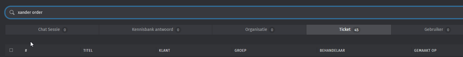 I also tried moving tickets around to different groups etc, tried searching in the little bar on the left entering all words, tried adding / deleting search terms via the ‘big bar’ in the center, but it doesn’t matter, the results are always the same in these cases.