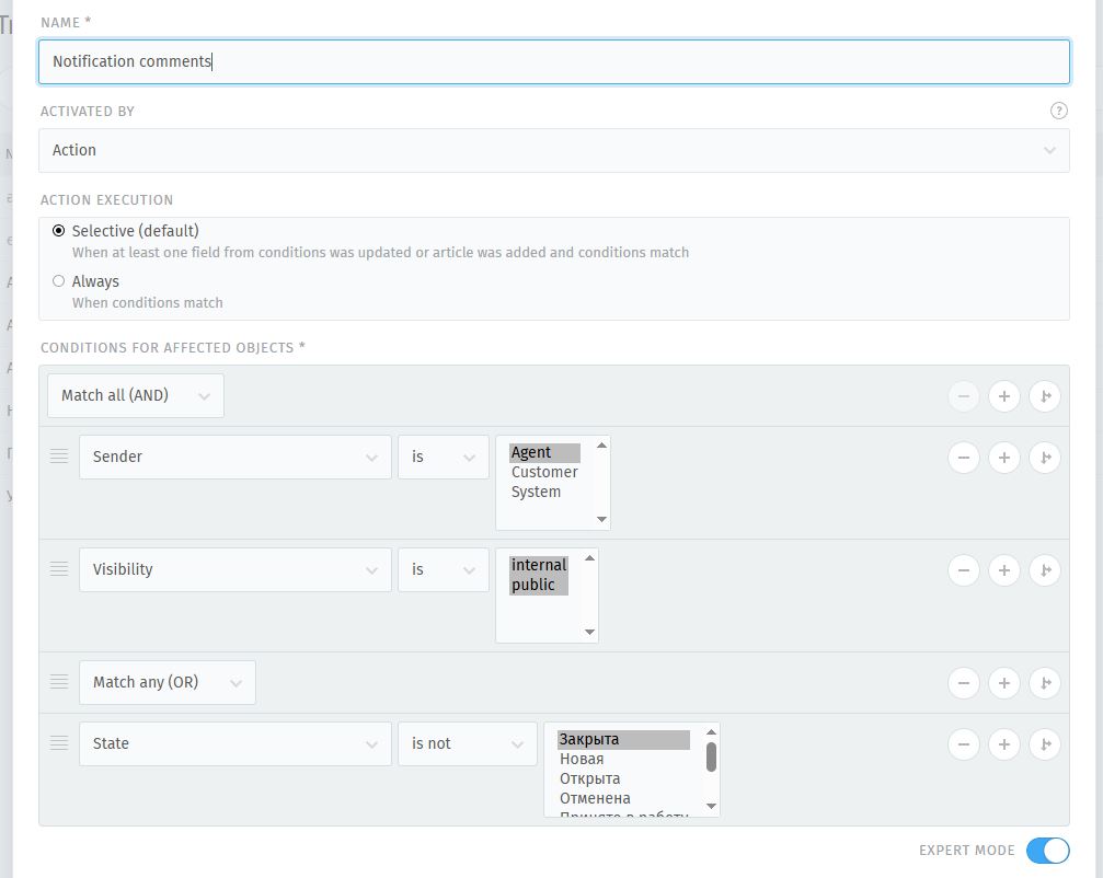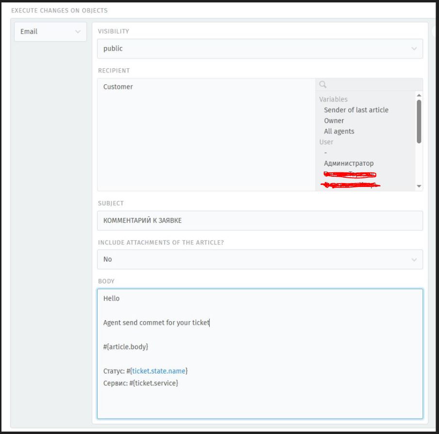 - The agent leaves a comment on the user’s ticket, the user receives an email with the text of the comment and can reply to it, thereby the agent will see the user’s response in the ticket interface.