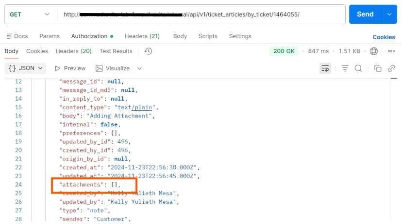 - I have migrated tickets and attachments from legacy system, but from api i don’t see attachments.