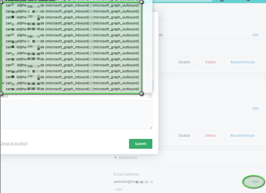 - If the assignment of an email address needs to be corrected, I would like to be able to select the appropriate email address.
