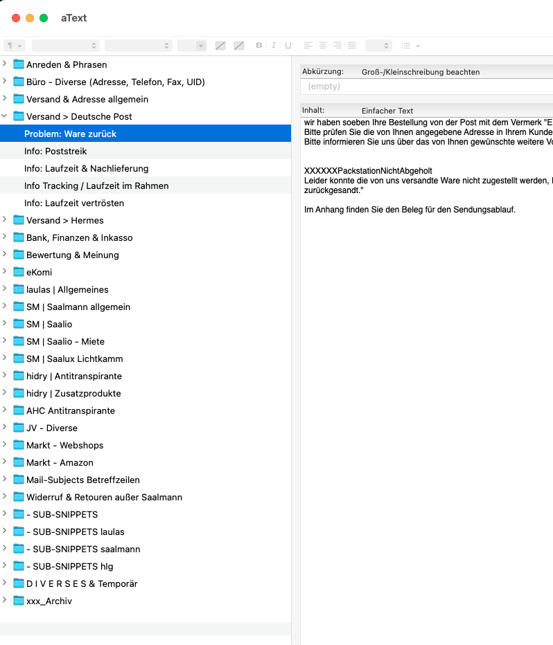 We use Zammad’s knowledge base exclusively internally to manage and provide standard texts for customer support.