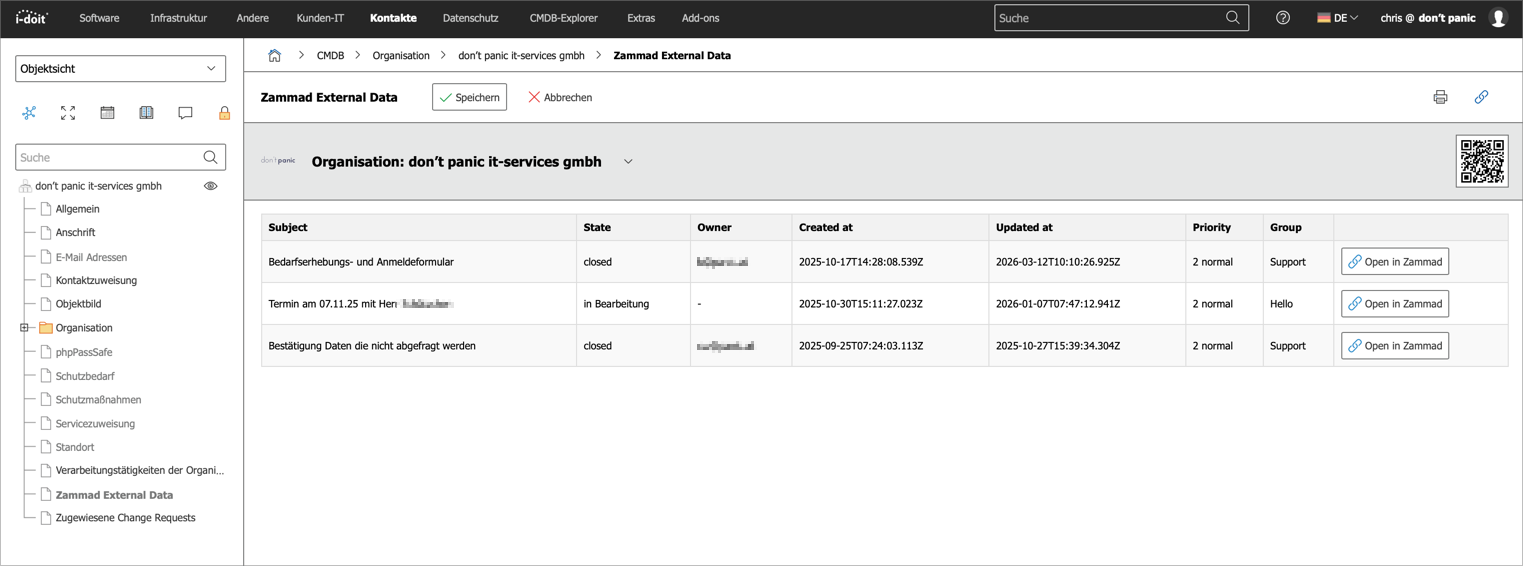 The CMDB database integration in Zammad in the logics/designs of the “idoit” integration can be easily adapted and re-used for all other CMDB databases (Snipe IT, Baramundi, etc) by simply utilizing the “external database” and “Java Script” attribute formats in individual combinations.