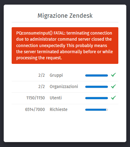 - Zendesk import should start and complete successfully, without backend/database errors.