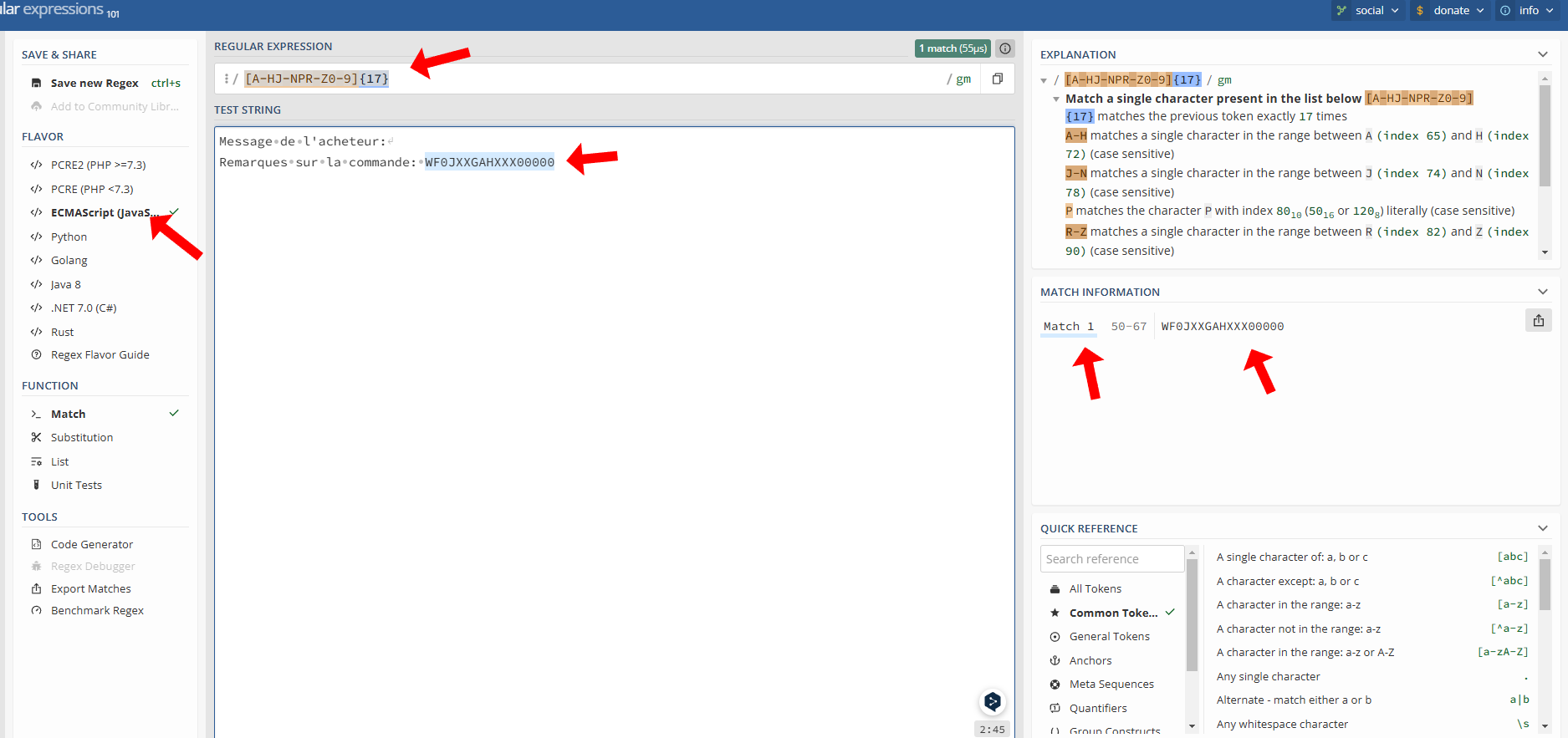 I have attached screenshots of my configuration and the regex101 test results for further context.