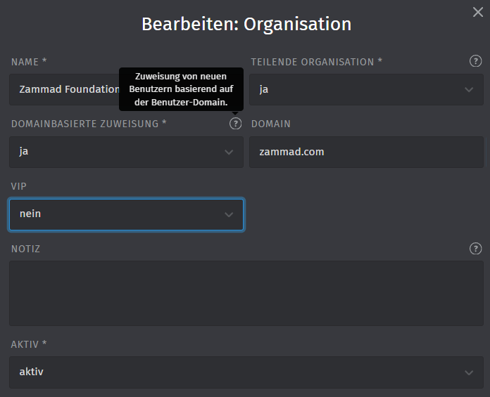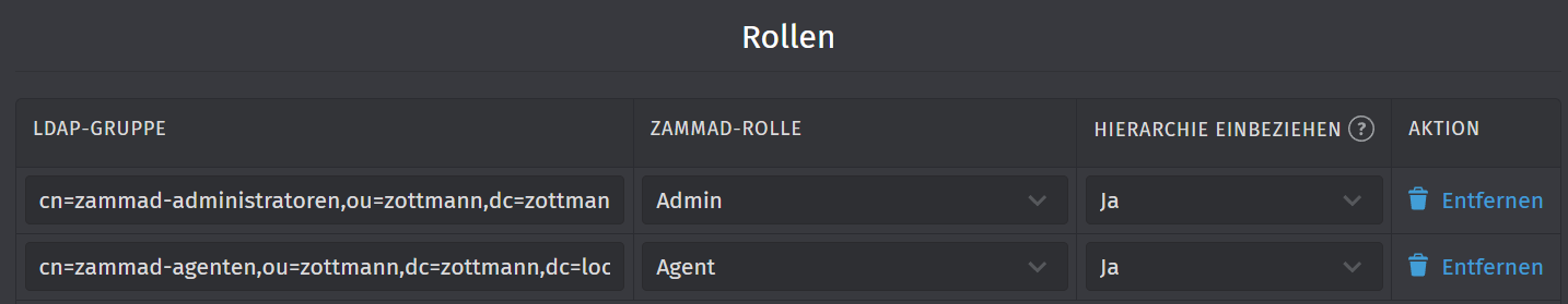 Create a local Zammad user, such as “sysadmin,” with an email address that is not in your Active Directory. However, I recommend creating AD groups like “Zammad Admins” and “Zammad Agents,” then assigning them to the corresponding Zammad roles. You can also create a third group for customers or automatically assign all other users to the customer role.